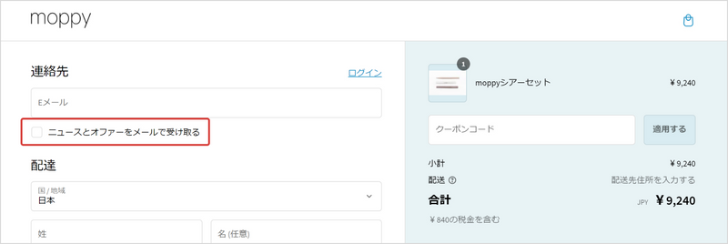 - ご購入手続画面に[クーポンコード入力欄]が表示されます。入力欄にクーポンコードを入力します。